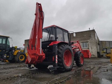 1-Тип экскаватора-погрузчика - Двухосный, пневмоколесный, с колесной формулой 4К4, управляемыми передними колесами, передним расположением погрузочного оборудования и задним расположением экскаваторного оборудования